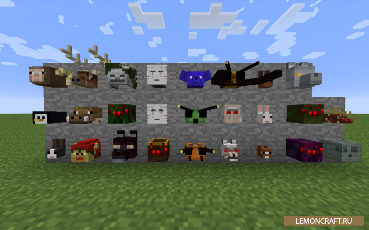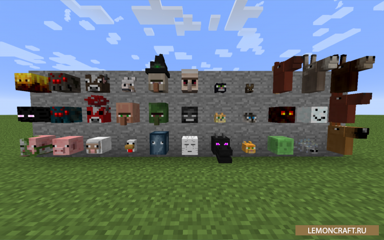 Мод Headcrumbs добавит в игру головы различных животных, школьников, игроков, ютюберов и т.д и т.п. Данные головы могут выпасть с убитых мобов, или вы сами можете найти их бродя по миру майнкрафт. Данный мод имеет файл конфигурации, в котором вы сможете увидеть, чьи именно головы можно найти в игре. Мод поддерживает некоторые глобальные моды, такие как Natura Thaumcraft или Lycanite’s Mobs.