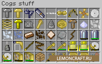 Мод на новые механизмы Cogs of the Machine является техническим модом и позволит создавать различные механизмы используя при этом шестерни и винты. Теперь у вас появится возможность создать целый комплекс новых механизмов в которых будут применяться пилы, вентиляторы, разбрызгиватели и летающие кирки.
