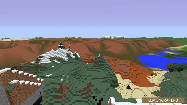 Мод на схематический вид местности CWG Far Plane View является небольшим аддоном для мода CubicWorldGen, который добавляет в игру более реалистичный дальний вид. В результате вместо пустоты вдалеке вы увидите размытые очертания мира, что выглядит очень реалистично. Кроме этого вы сможете рассмотреть различные биомы, находящиеся на большом расстоянии. Одно расстраивает, что данный мод работает только при генерации миров CustomCubic и FlatCubic мода CubicWorldGen.