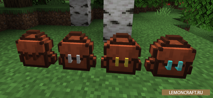 Мод на прикольные рюкзаки Sophisticated Backpacks добавляет в игру новые виды рюкзаков, которые вы сможете разместить в своем мире. Данные рюкзаки можно окрашивать в различные цвета, а так же, вы сможете улучшать их различными дополнениями.