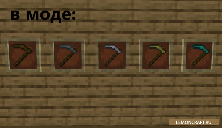 Мод на косы Scythescraft добавляет в игру новый вид инструмента, с помощью которого вы сможете убирать траву в радиусе 3-х блоков. Существуют следующие разновидности кос, которые различаются только по прочности: алмазная, золотая, железная, каменная и деревянная.