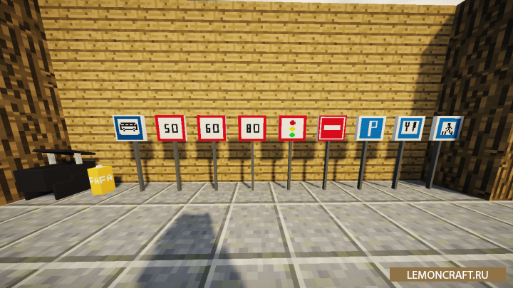 Мод на дорожные знаки Decoration++ добавляет в игру несколько видов дорожных знаков с помощью которых вы сможете декорировать свою сеть дорог. Все новые предметы используются только из креатива и не имеют крафта.